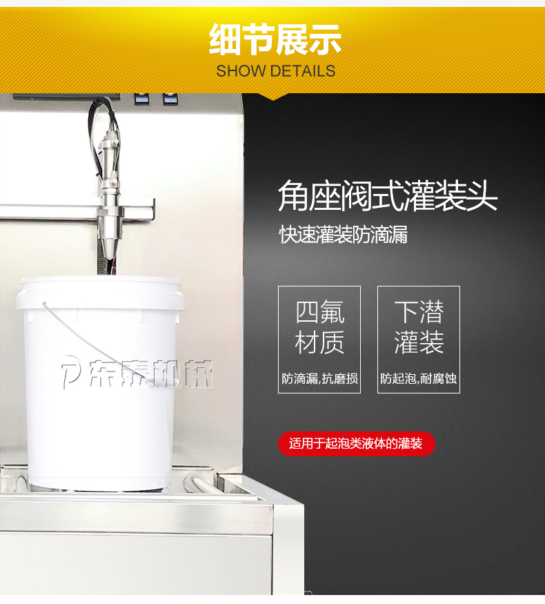 2:半自動油脂灌裝機采用手動上瓶單速控制灌裝流速,勻速灌裝,使用氣動內封閉式灌裝閥嘴可有效防止灌裝過程的滴漏;