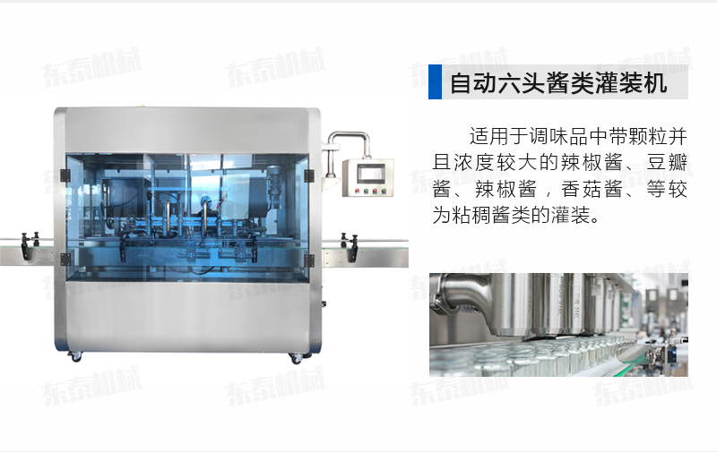 該醬體灌裝機生產線采用活塞式氣缸驅動原理,適用于調味品中帶顆粒并且濃度較大的辣椒醬、豆瓣醬、辣椒醬,香菇醬、等較為粘稠醬類的灌裝。灌裝轉閥可以根據客戶物料定做加大,以適應不同客戶物料的灌裝需求。配備臥式攪拌料斗,大限度的保障在灌裝過程中物料均勻、無油醬分離。該設備在設計上大大縮短了下料斗到灌裝頭的灌裝距離,克服了含油量大的物料(如:含芝麻粒的辣椒油)在灌裝過程中出現的有些瓶油多,有些瓶醬多的灌裝誤差大的缺點。