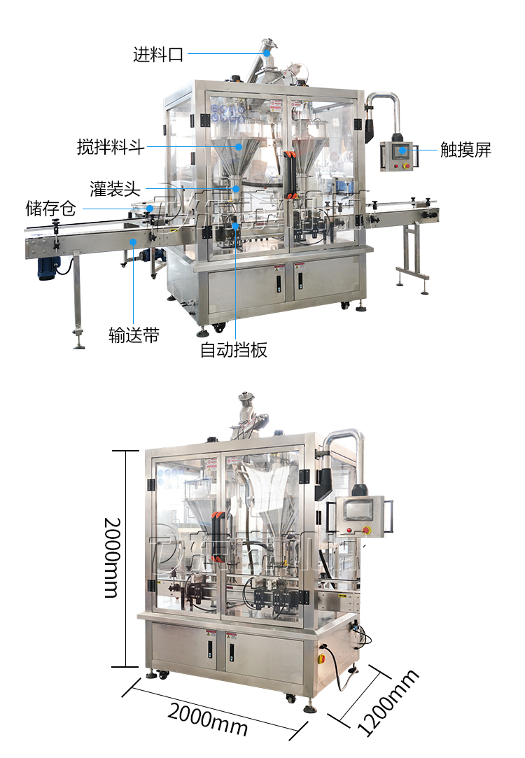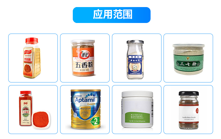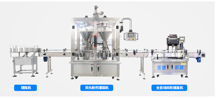 自動定量粉劑灌裝機該機是一種經濟型粉劑和小顆粒自動灌裝機,可以完成瓶的自動定位,灌裝和計量。它由一個灌裝頭,一條連接帶和—個定位裝置組成?;虿竭M)電機,PLC和蝕摸屏控制,操作簡便,穩定性高。它可以與開瓶器,封蓋機和貼標機結合形成一祭完整的灌裝線。適用于包裝粉末和小顆粒物料,例如粉末,小顆粒,獸藥,葡萄糖,調味品,體飲料,碳粉,滑石粉,農藥等。